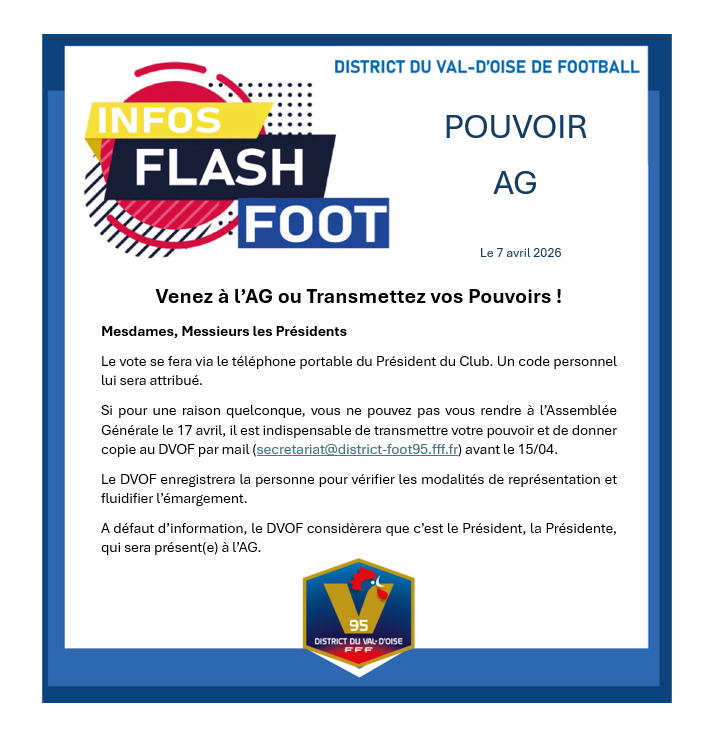 Le District du Val d'Oise de Football informe l’ensemble de ses clubs qu’un dysfonctionnement est actuell...