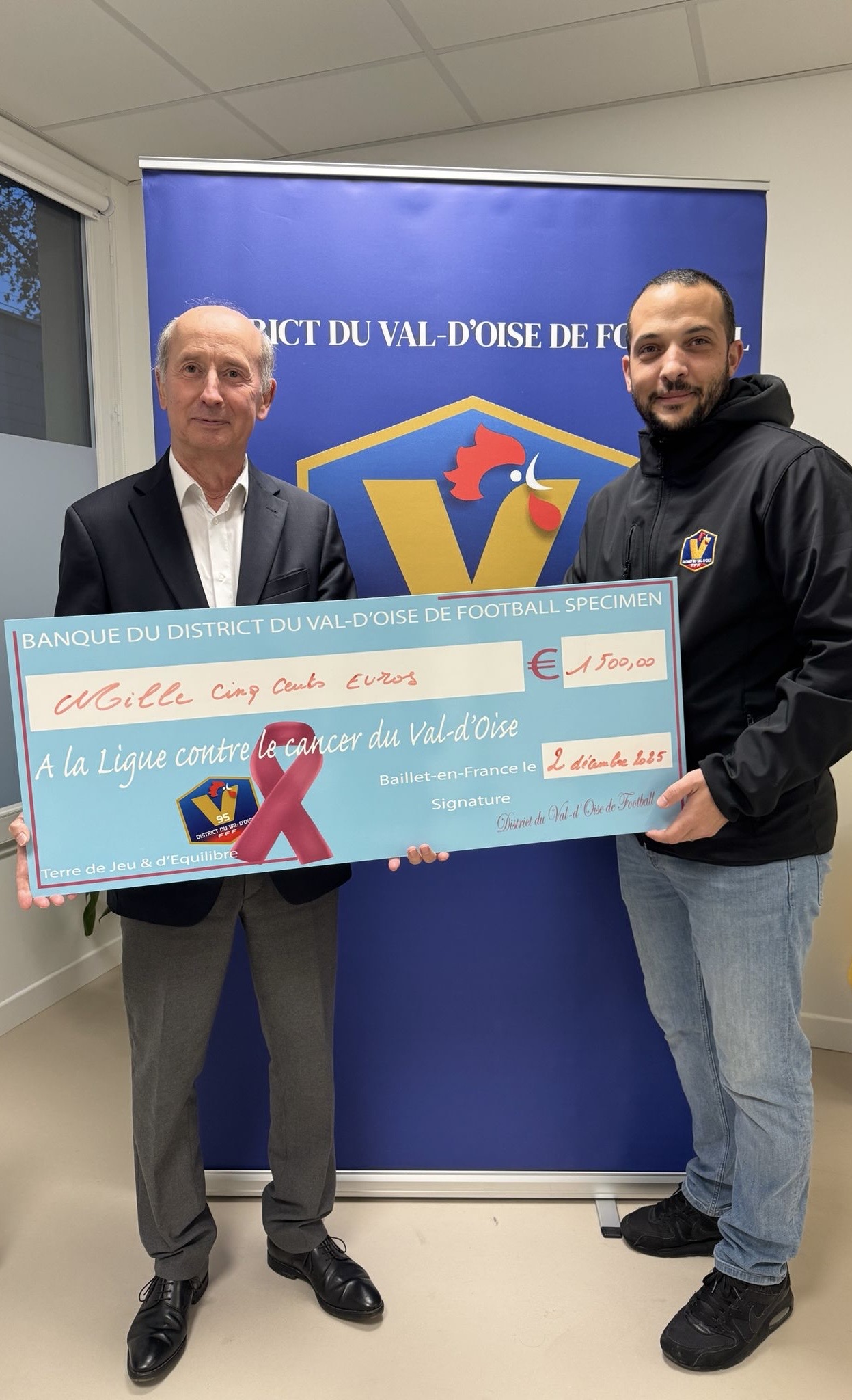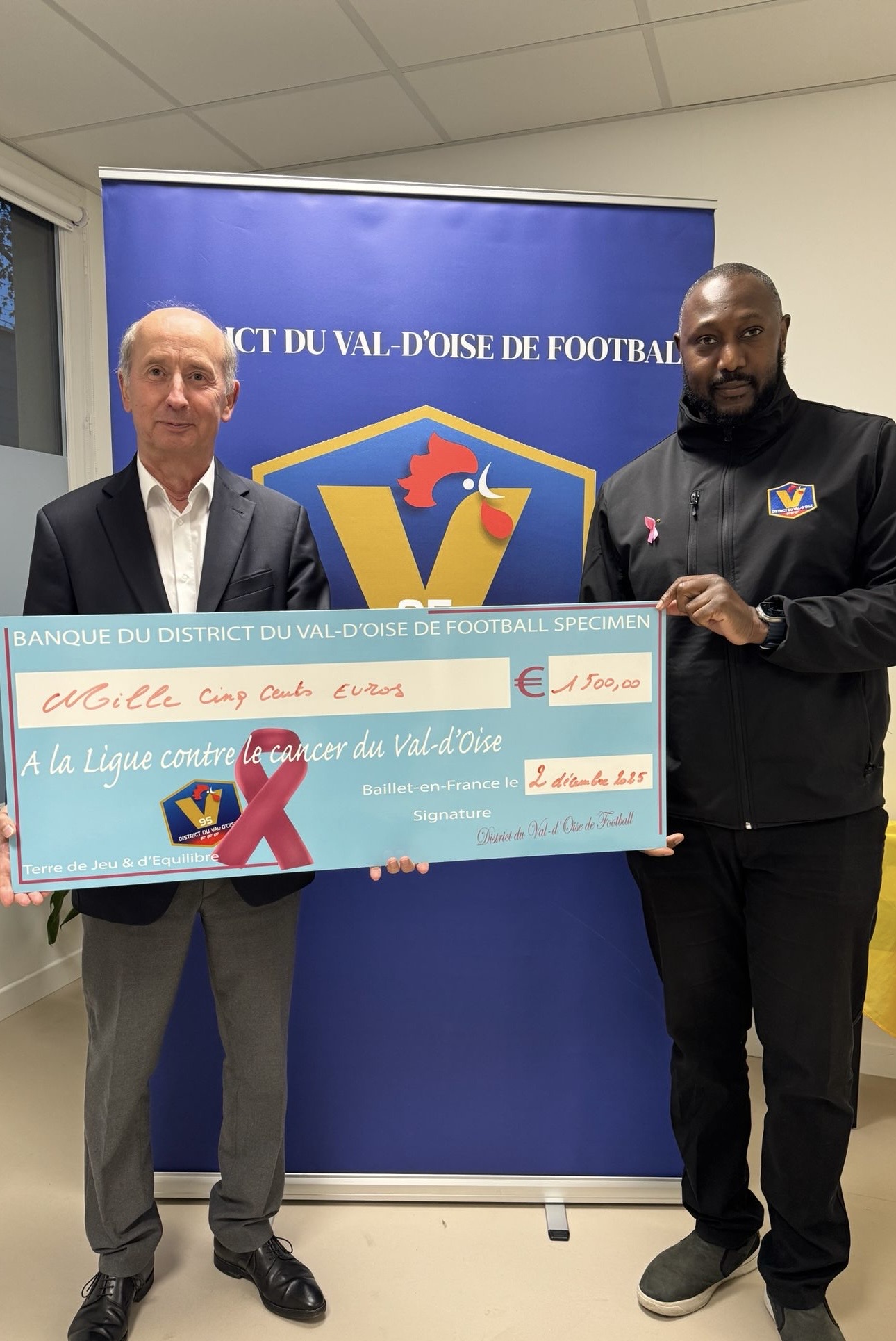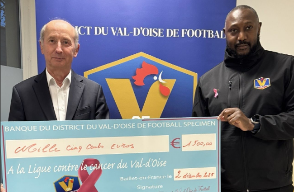 Ce mardi, une belle page solidaire s’est écrite pour le District du Val-d’Oise de Football. Le président Idriss TRAORÉ, accompagné de Mounia CHAKRI et Jérémy GARCIA DANTAS, s’est rendu au siège de la Ligue contre le Cancer du Val-d’Oise à Argenteuil pour remettre officiellement le chèque issu de l’opération Octobre Rose.