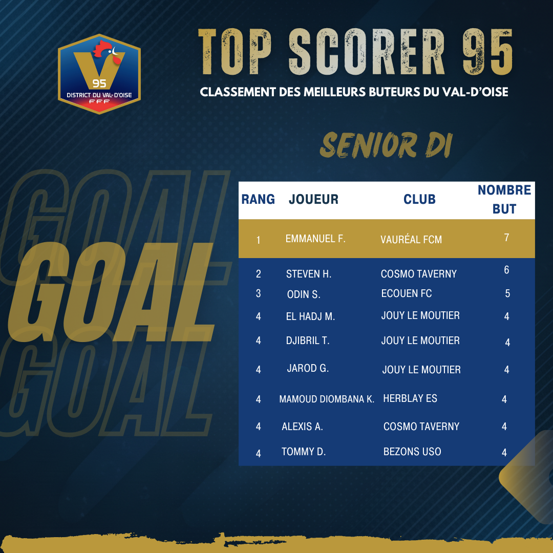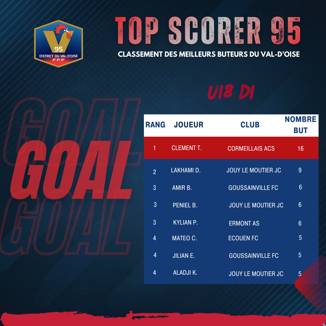 Découvrez le classement « TOP SCORER 95 » du 11 décembre 2025 !