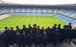 et 30 à 35 mètres de longueur) avec un revêtement synthétique et ceinturé par une